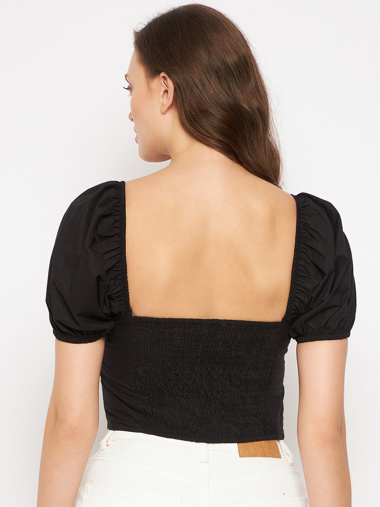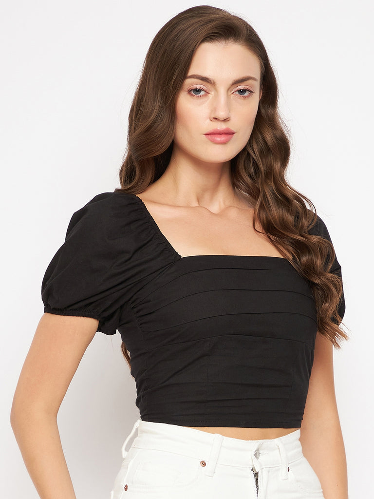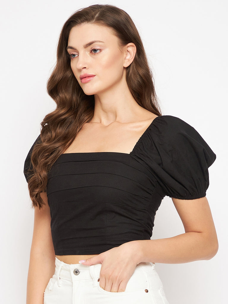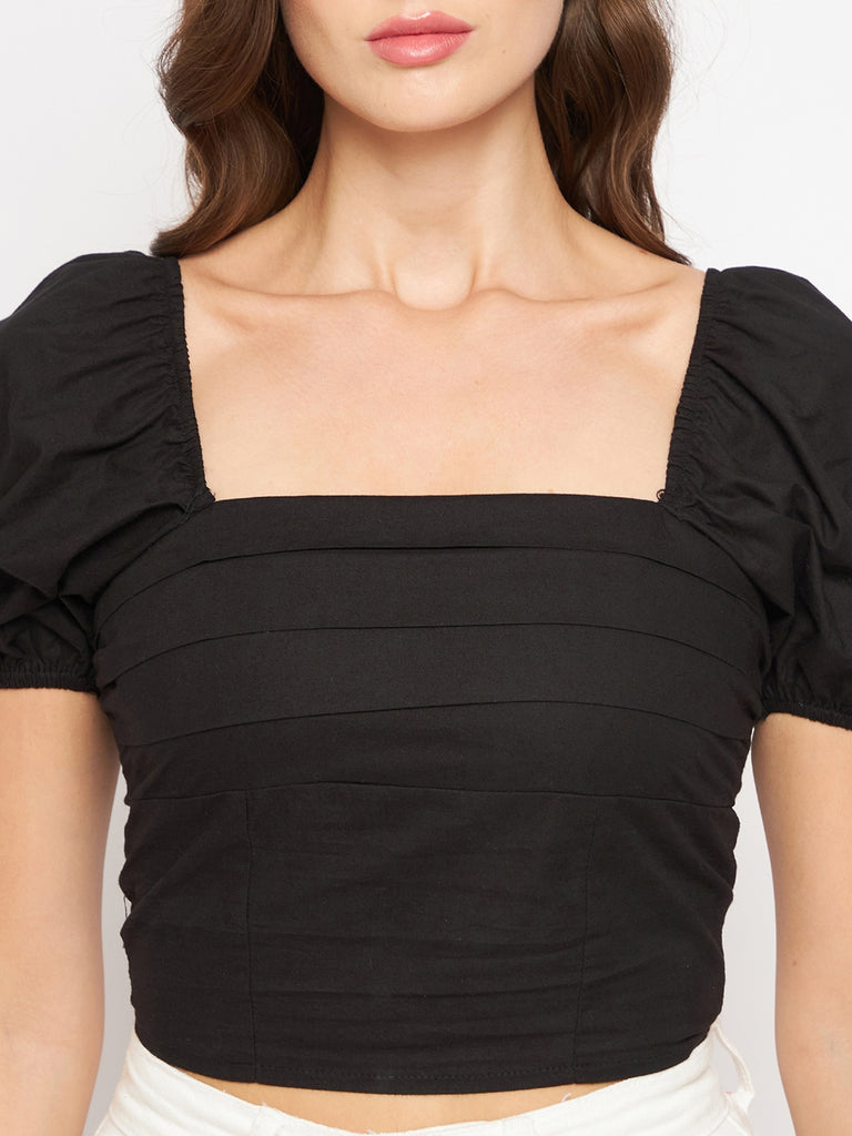 BLACK POPLIN PLEAT BUST TOP