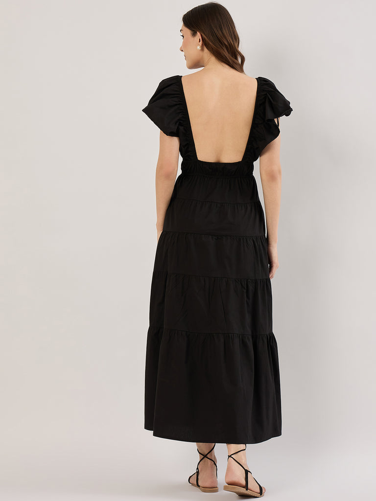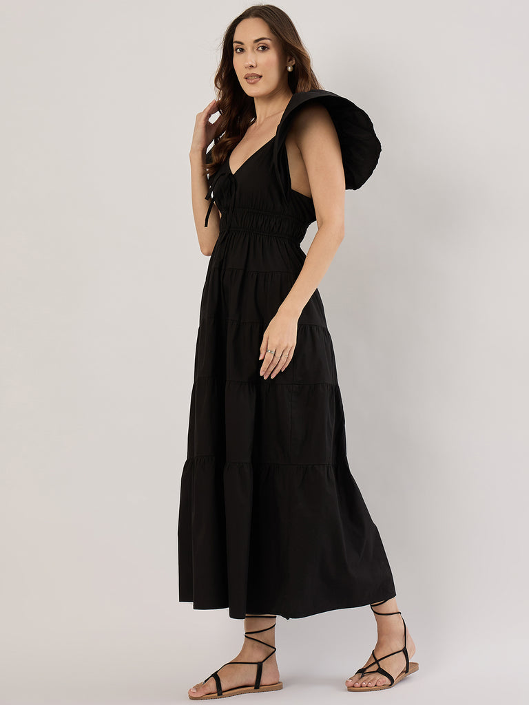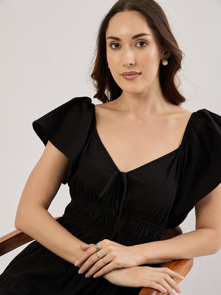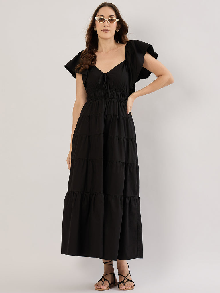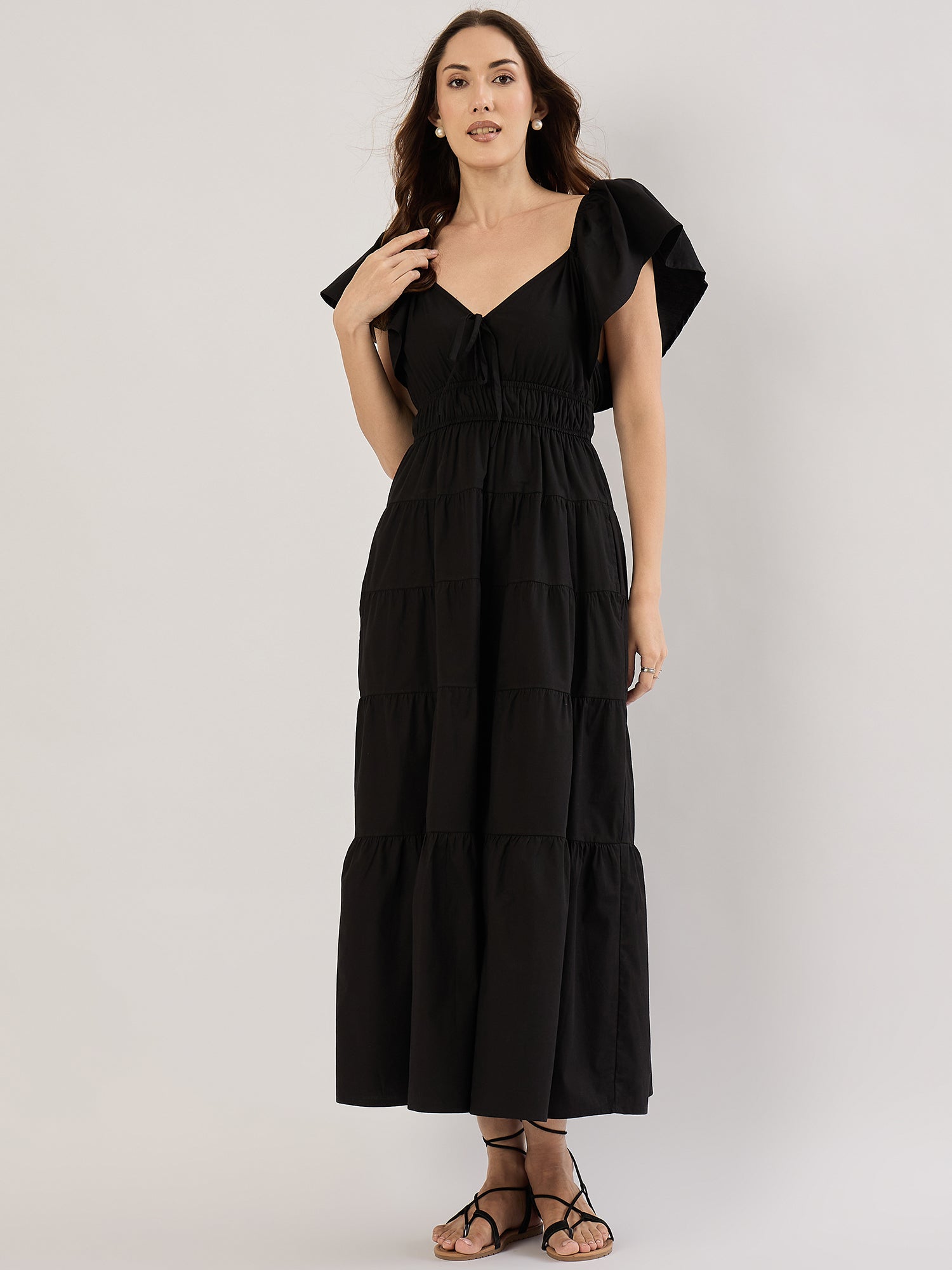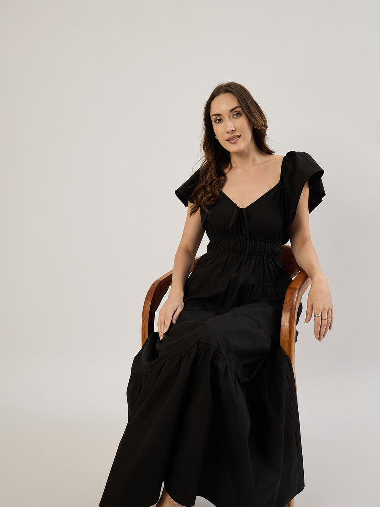 BLACK TIE FRONT FLUTTER SLV POPLIN MAXI
