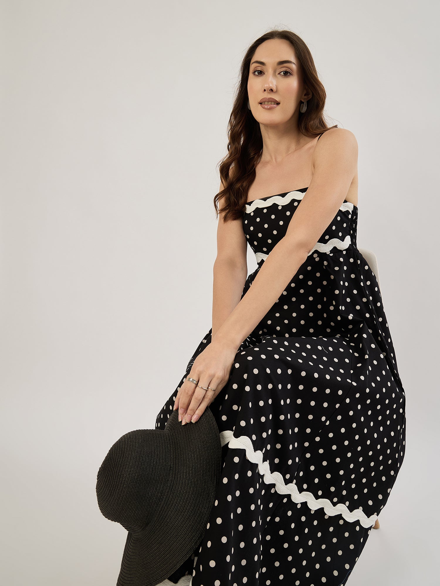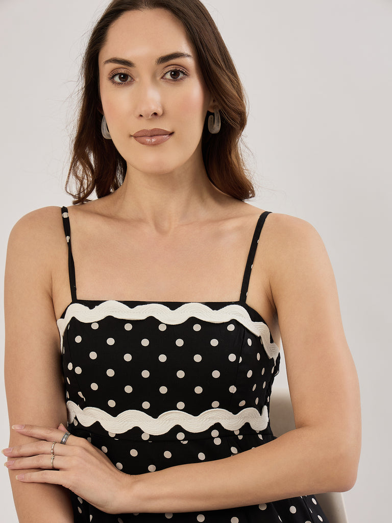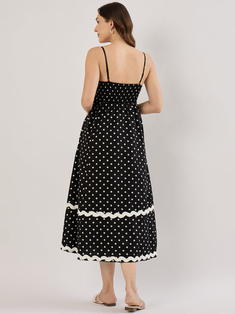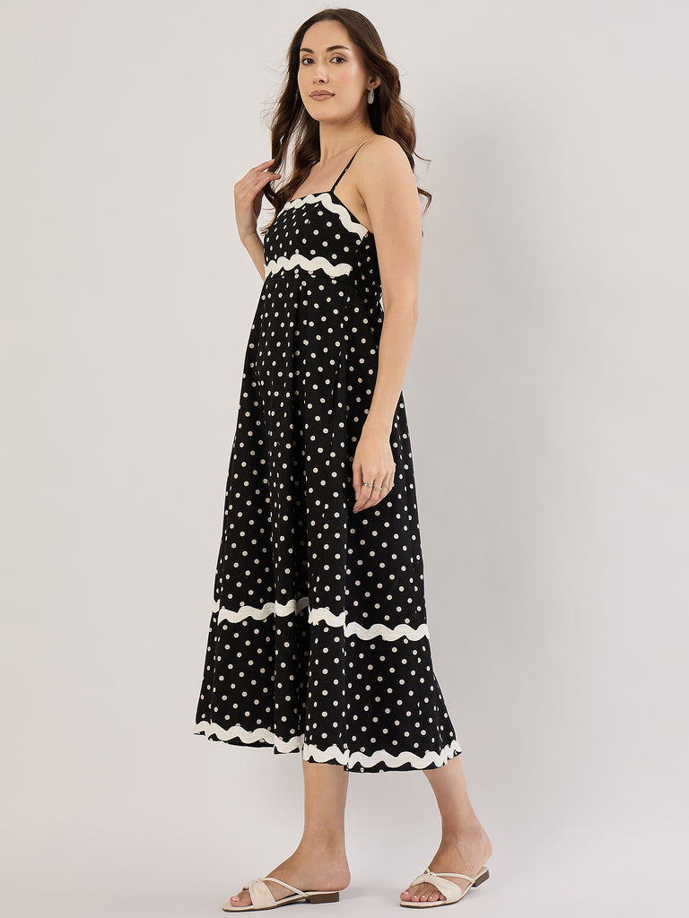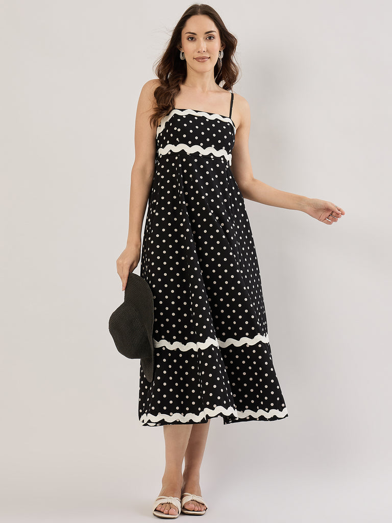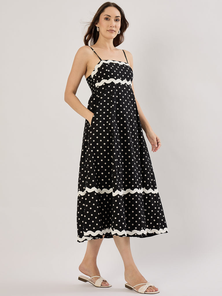 BLACK/WHITE DOT RIC RAC SL POPLIN MAXI