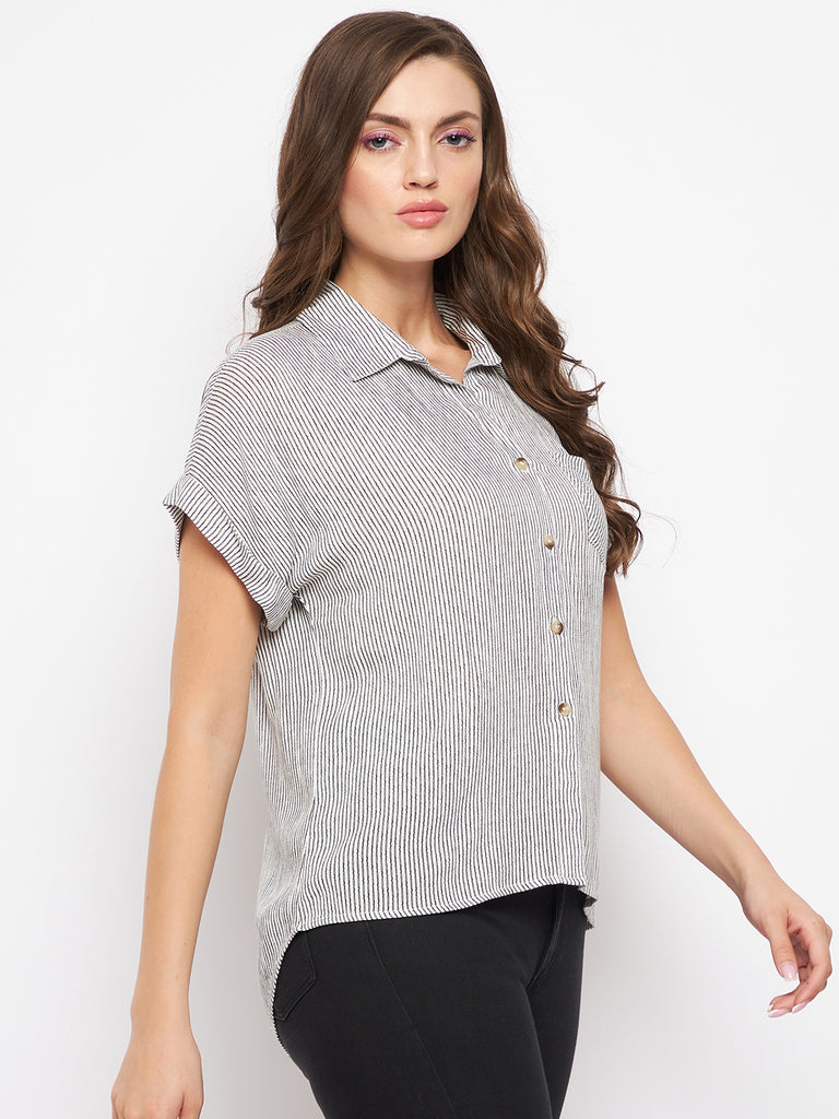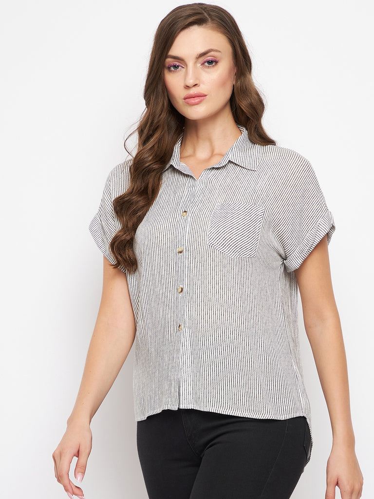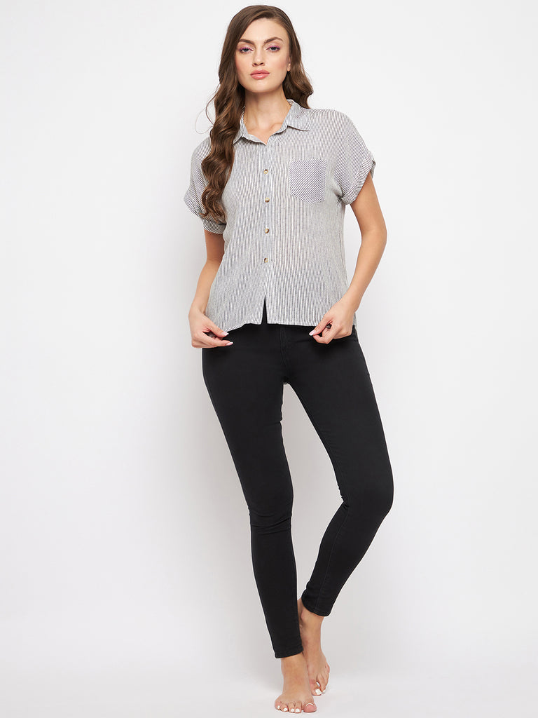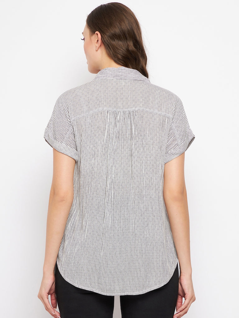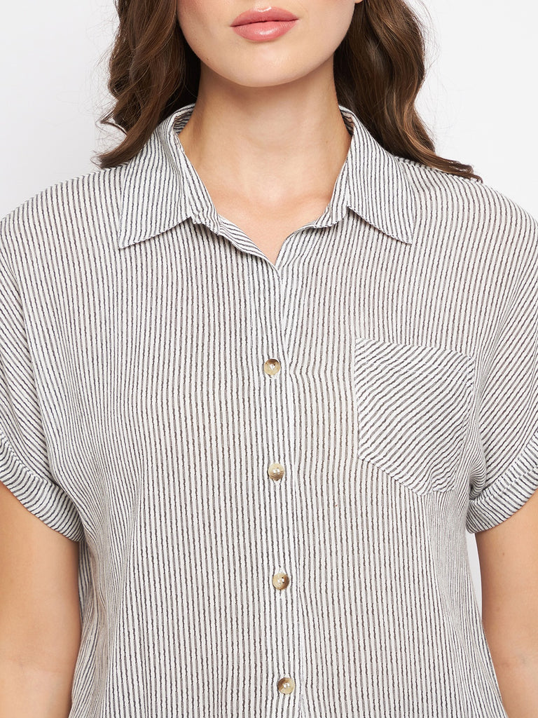 BLUE WHITE STRIPE CRINKLE GAUZE CAMP SHIRT