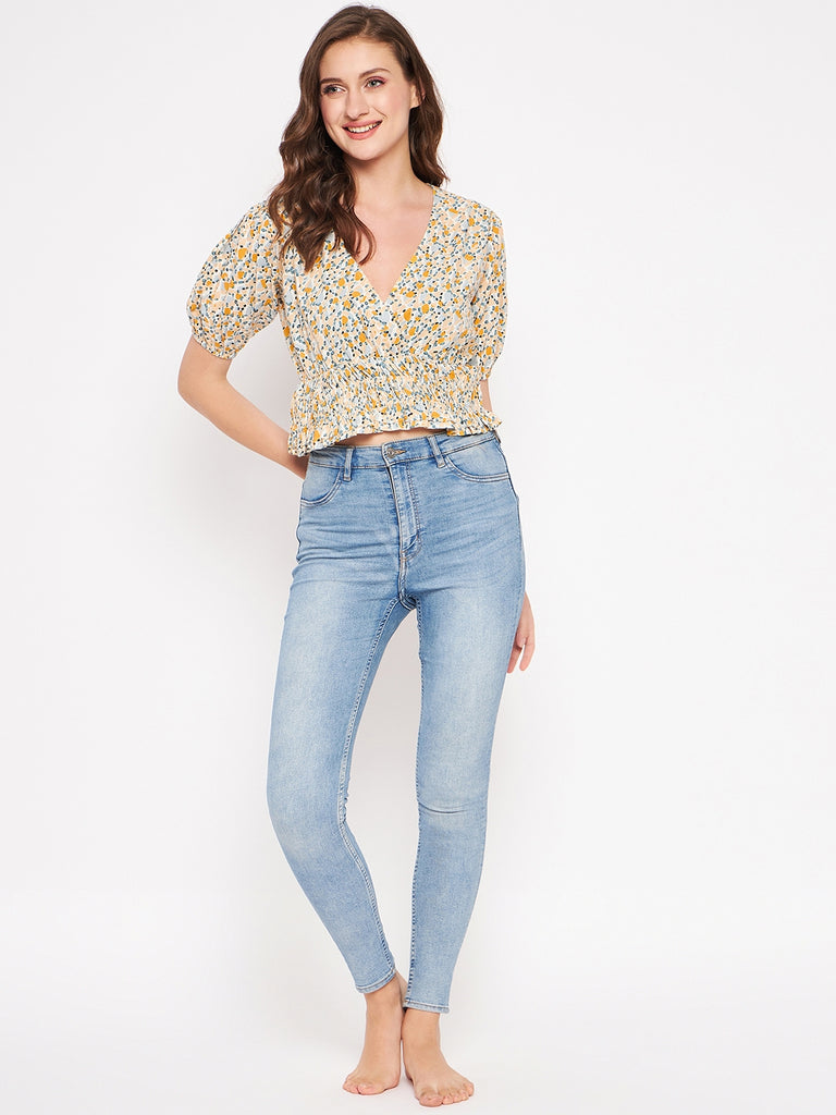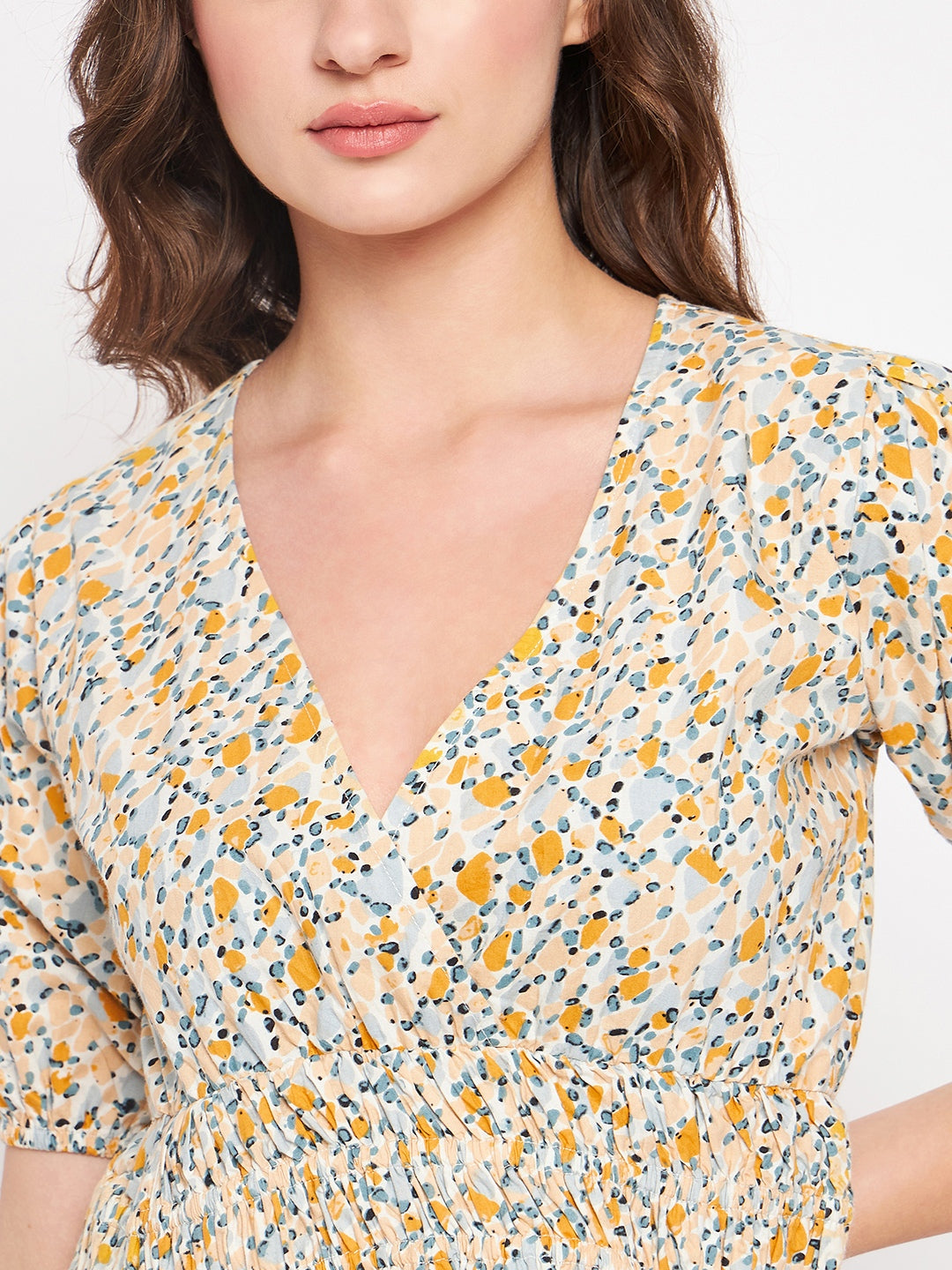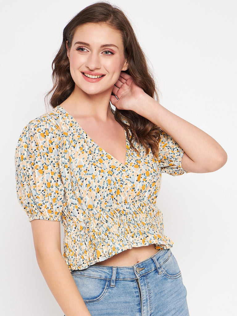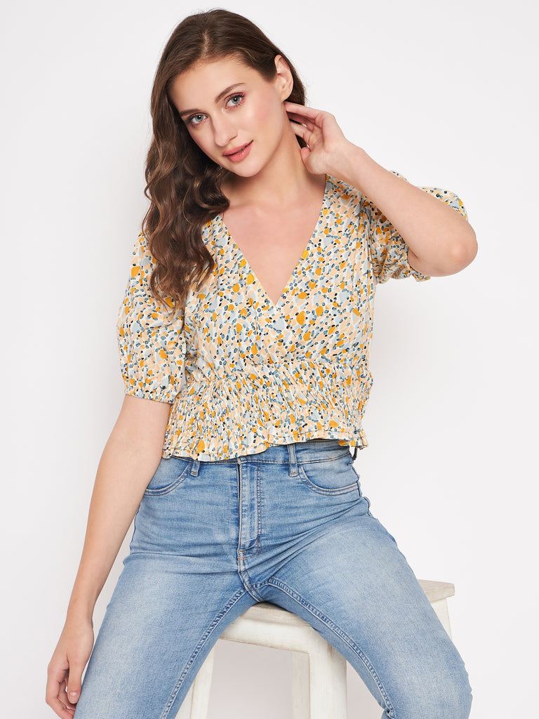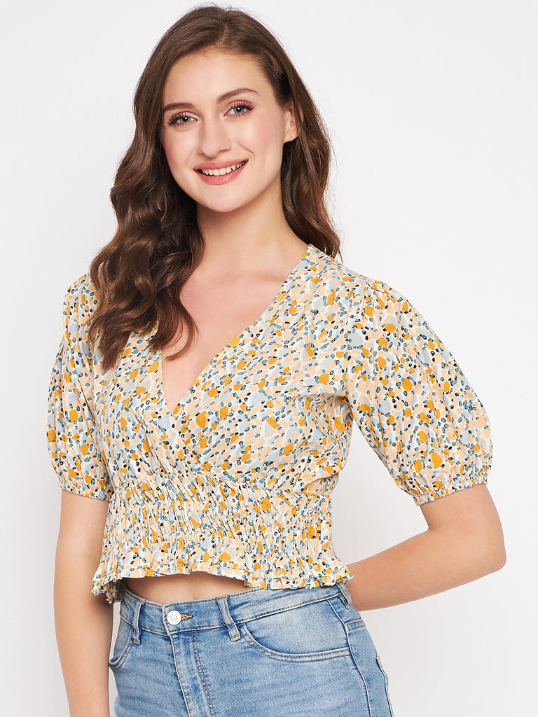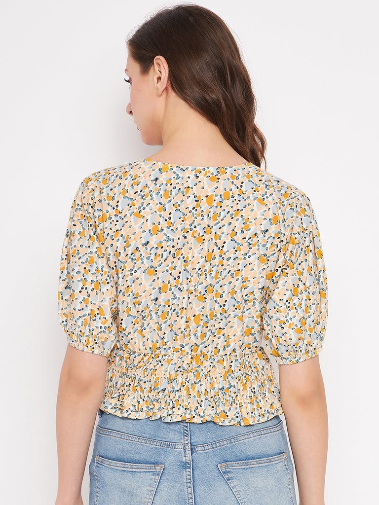 BLUE YELLOW DOT POPLIN SMOKED HEM TOP