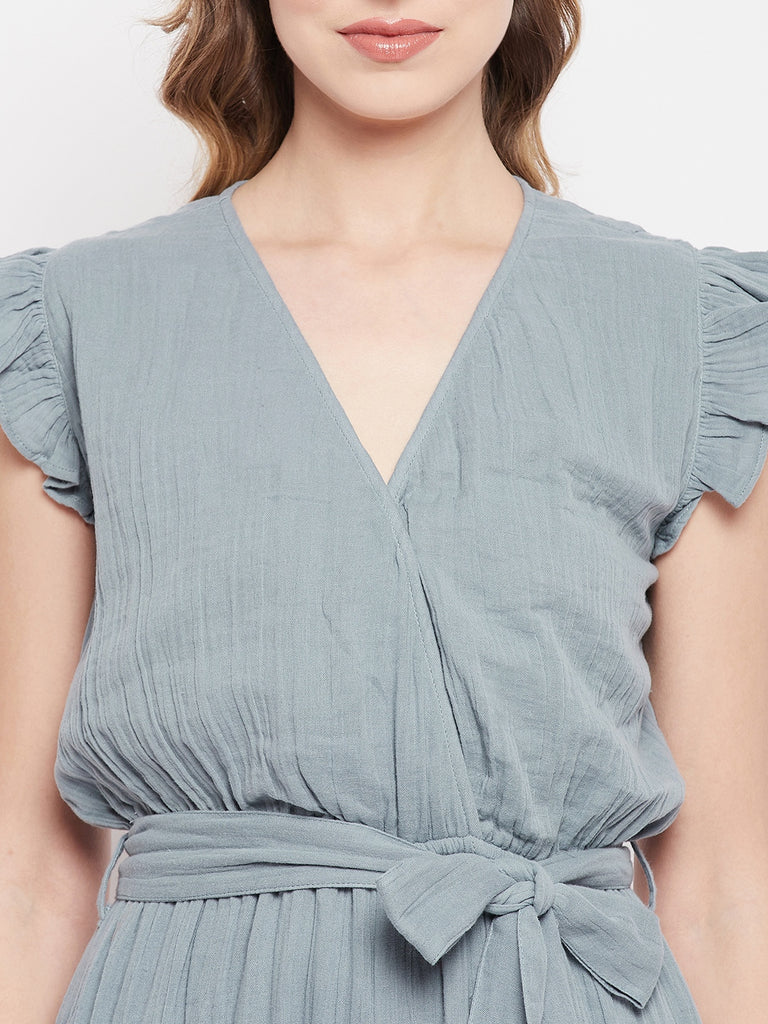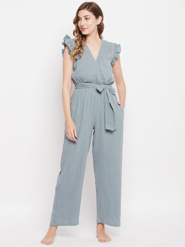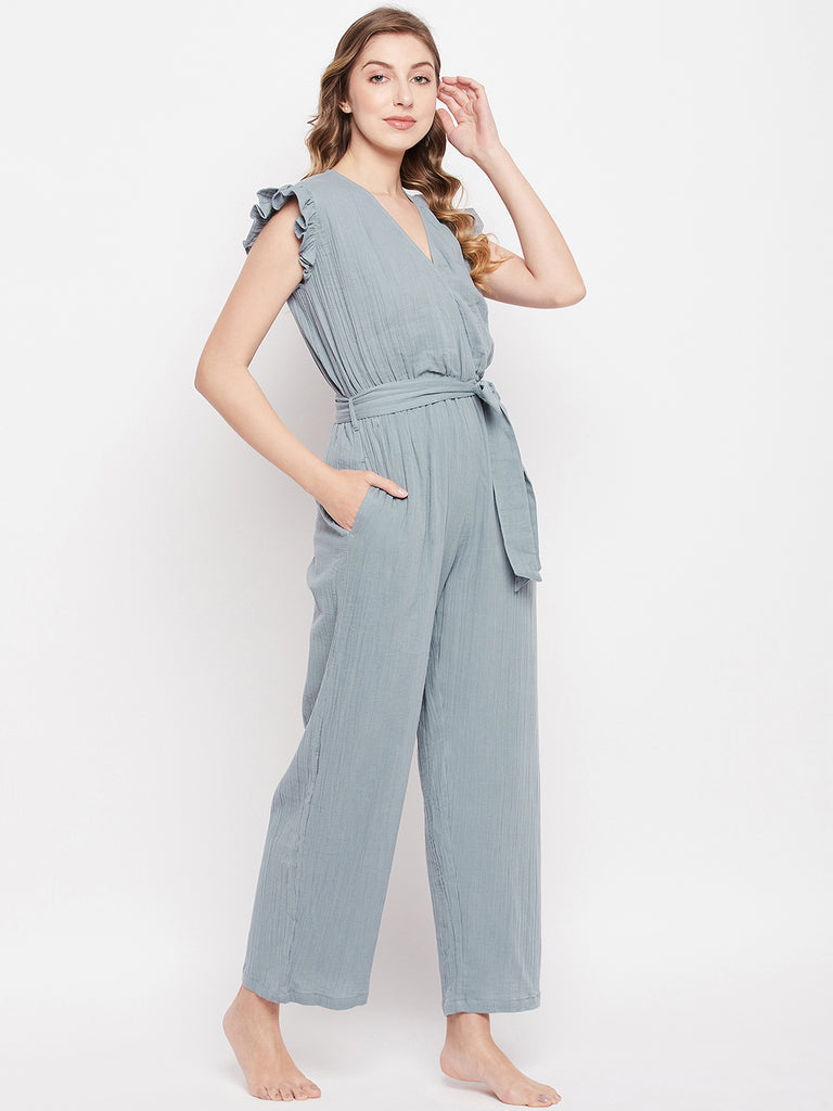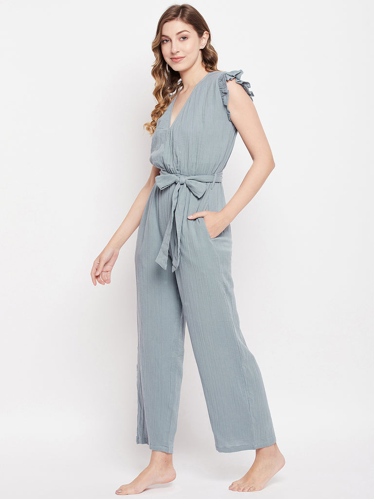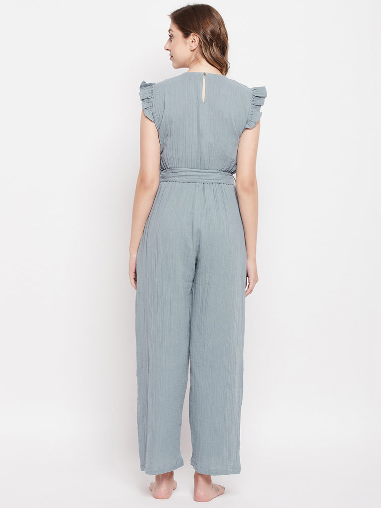 DUSTY BLUE DOUBLE GAUZE JUMPSUIT