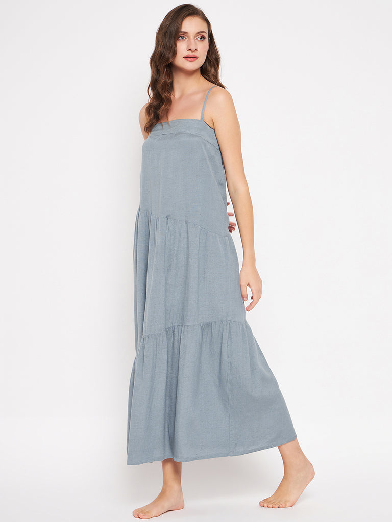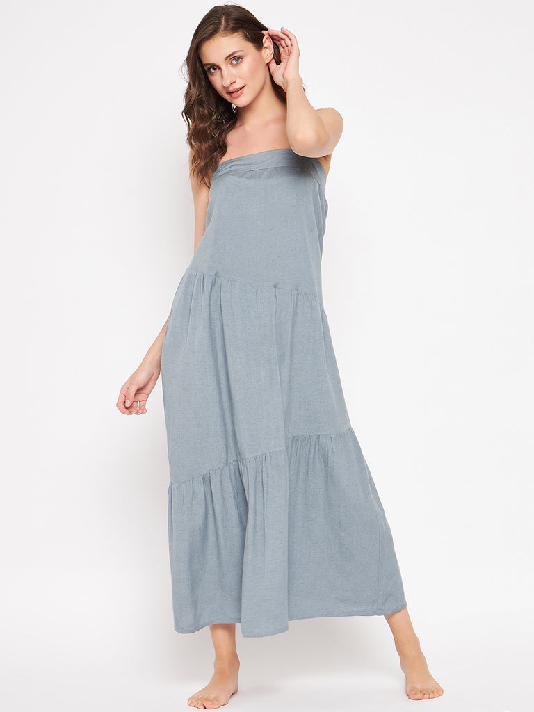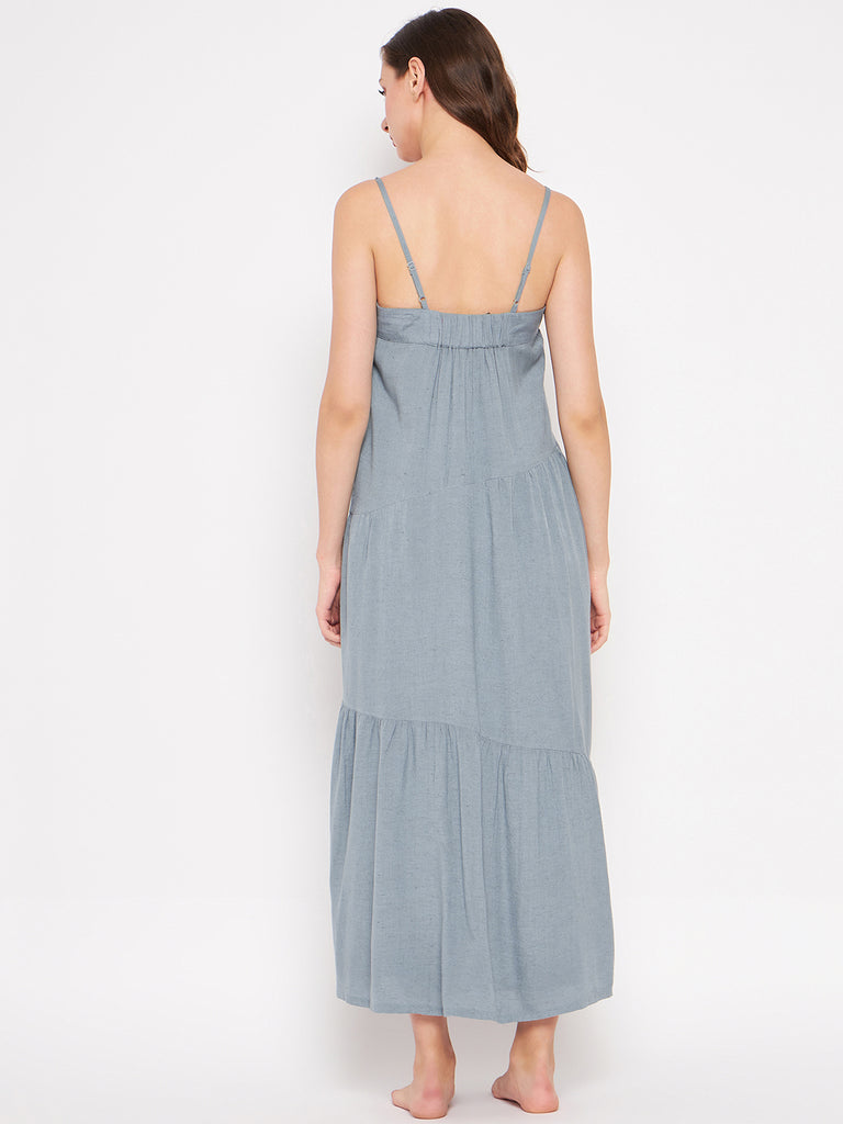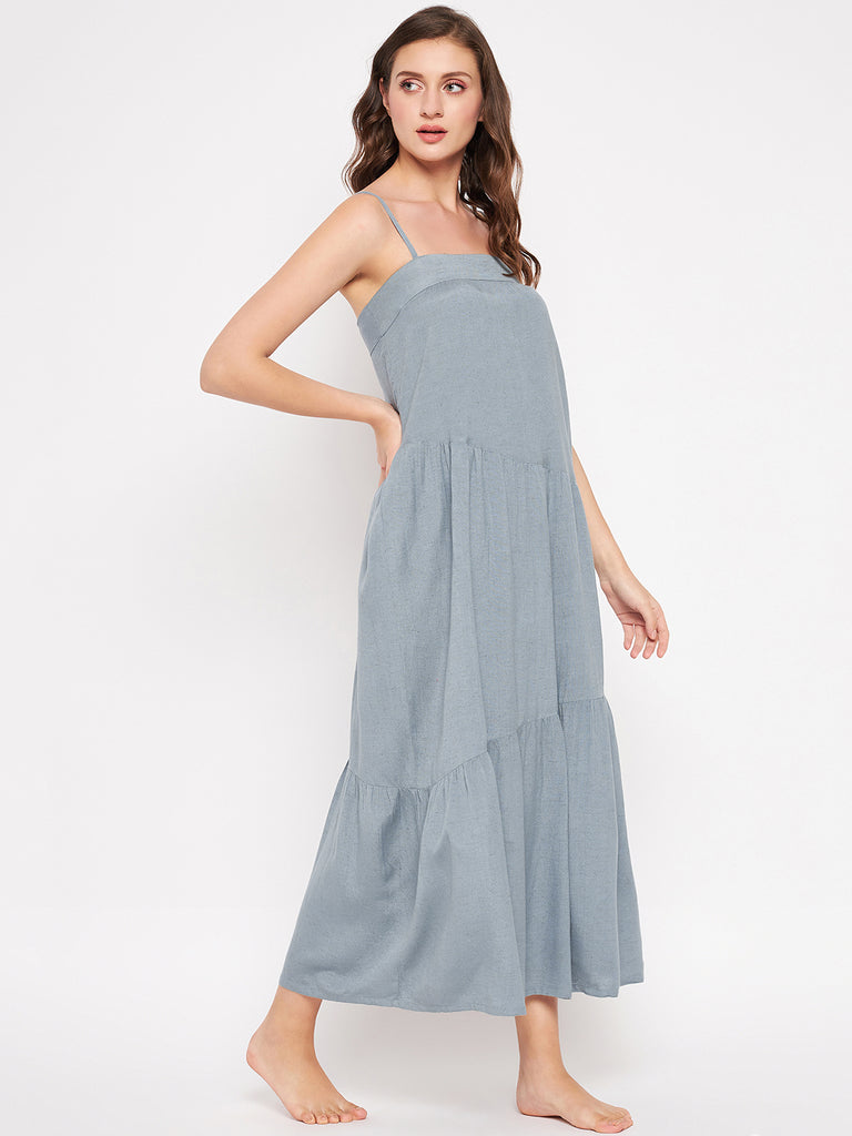 DUSTY BLUE RAYON LINEN MAXI DRESS