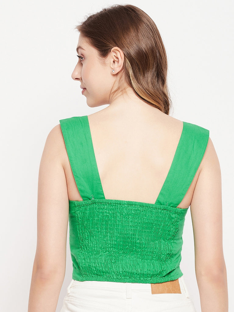 KELLY GREEN POPLIN BUTTON FRONT CORSET TOP
