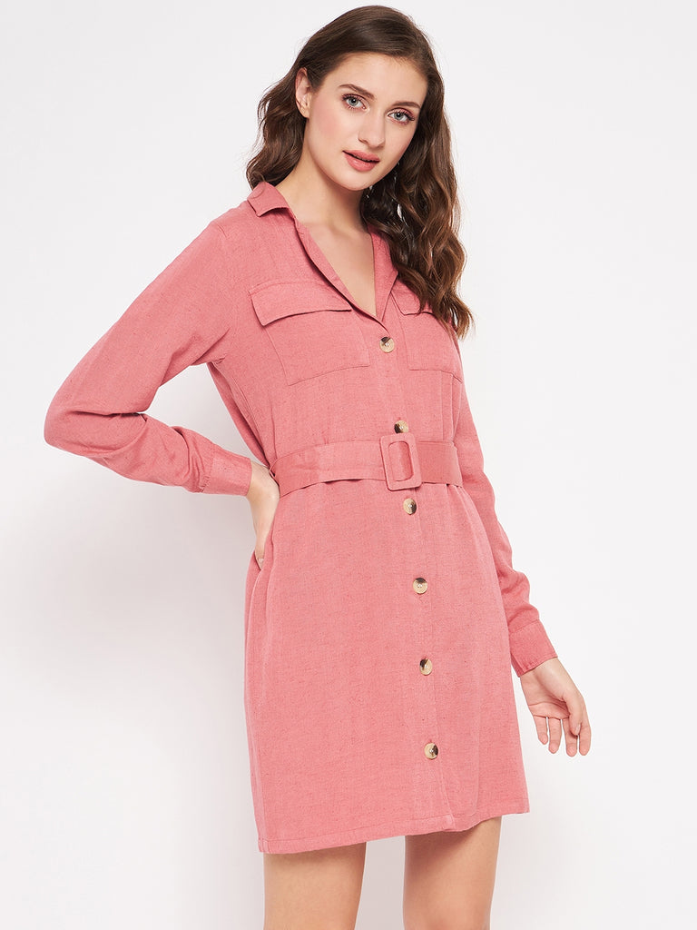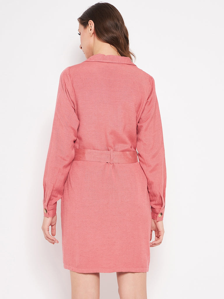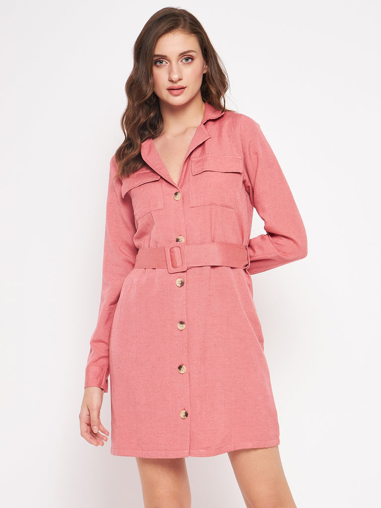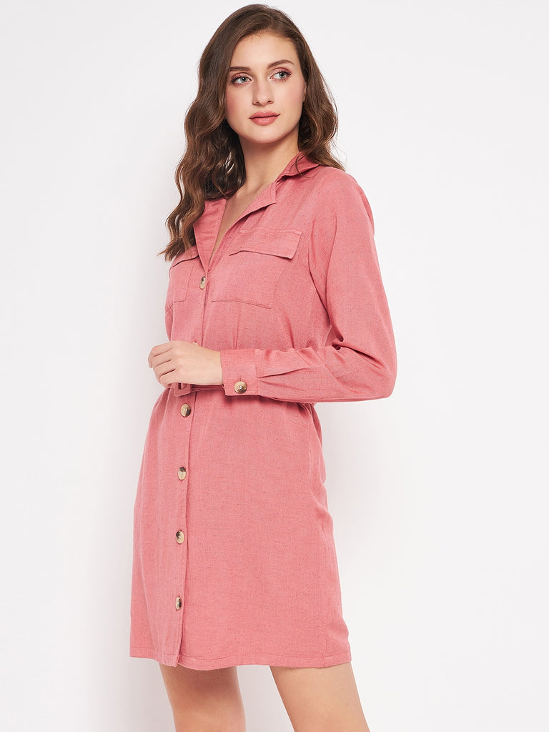 MAUVE CLAY RAYON LINEN LS MINI COAT DRESS