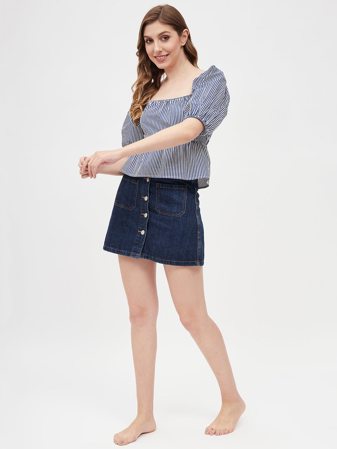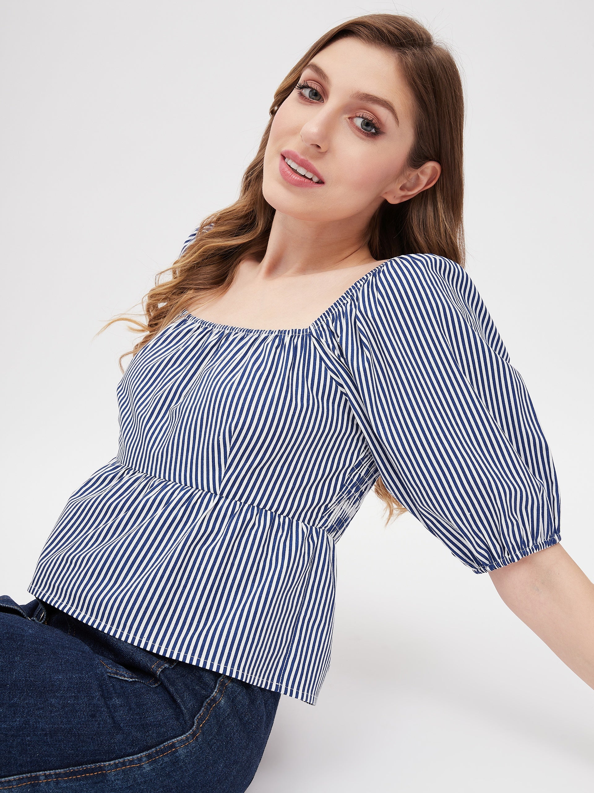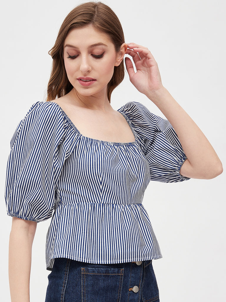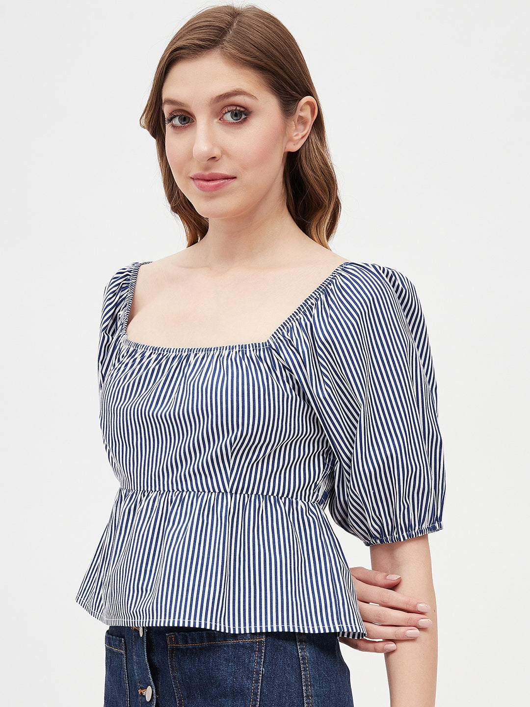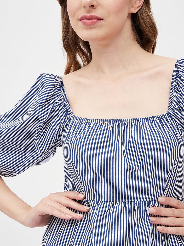 NAVY BLUE STRIPE POPLIN BABYDOLL TOP