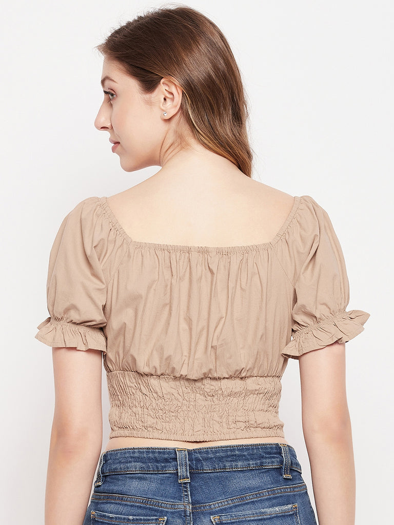 TAUPE POPLIN MILKMAID PUFF SLV TOP