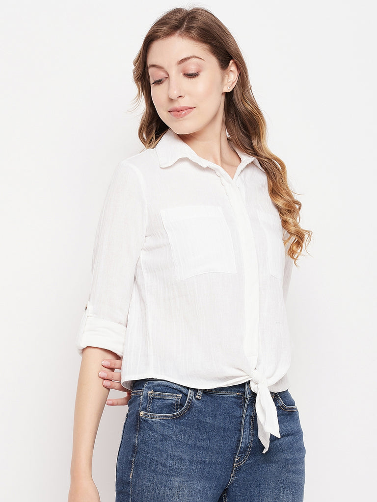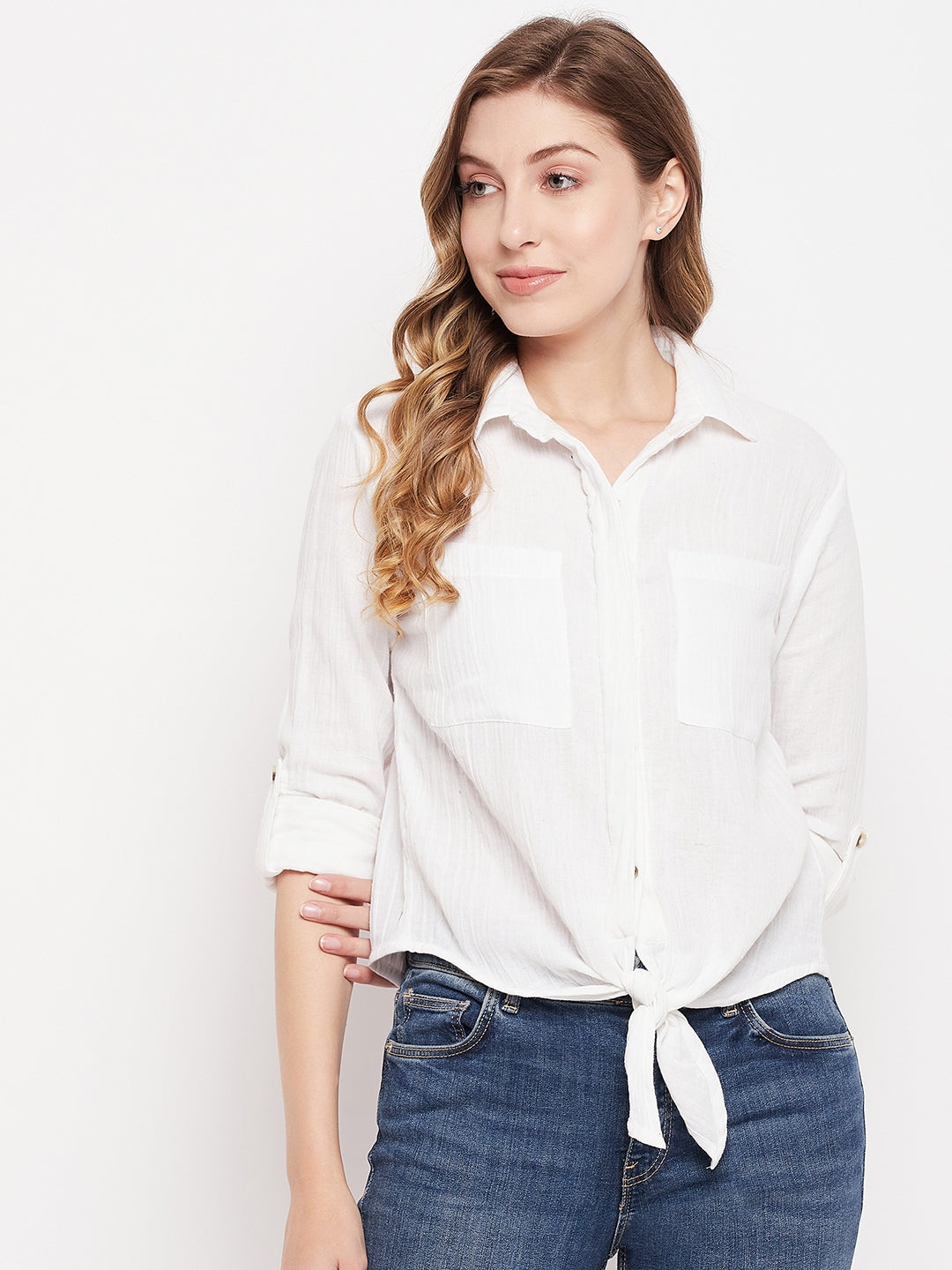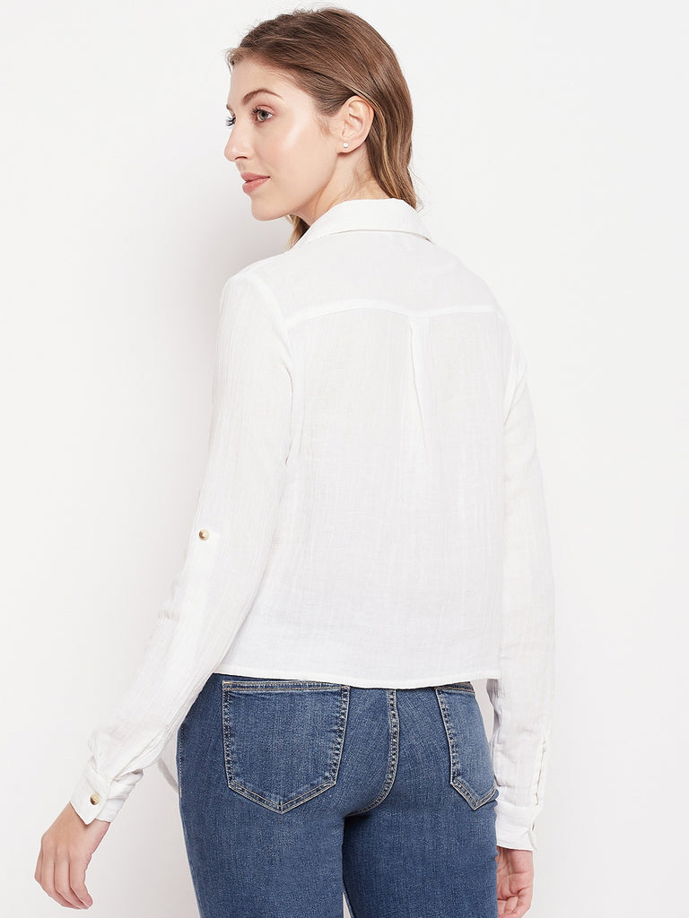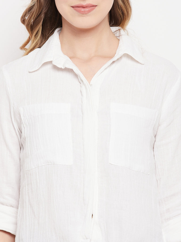 WHITE DOUBLE GAUZE 2 POCKET TIE FRONT TOP