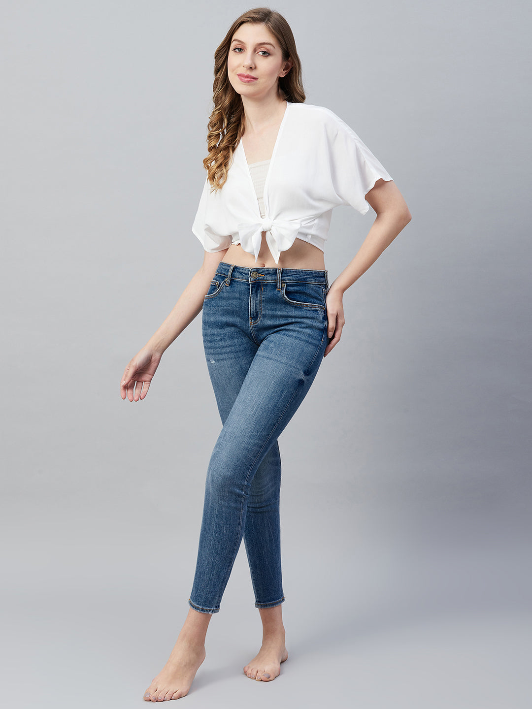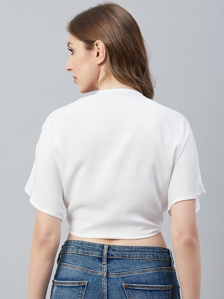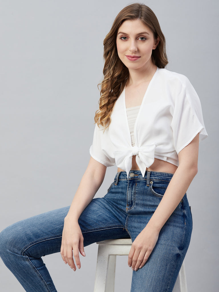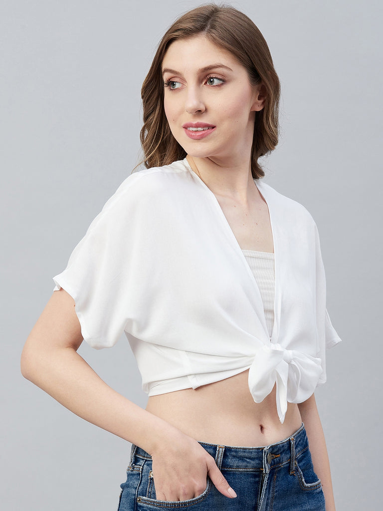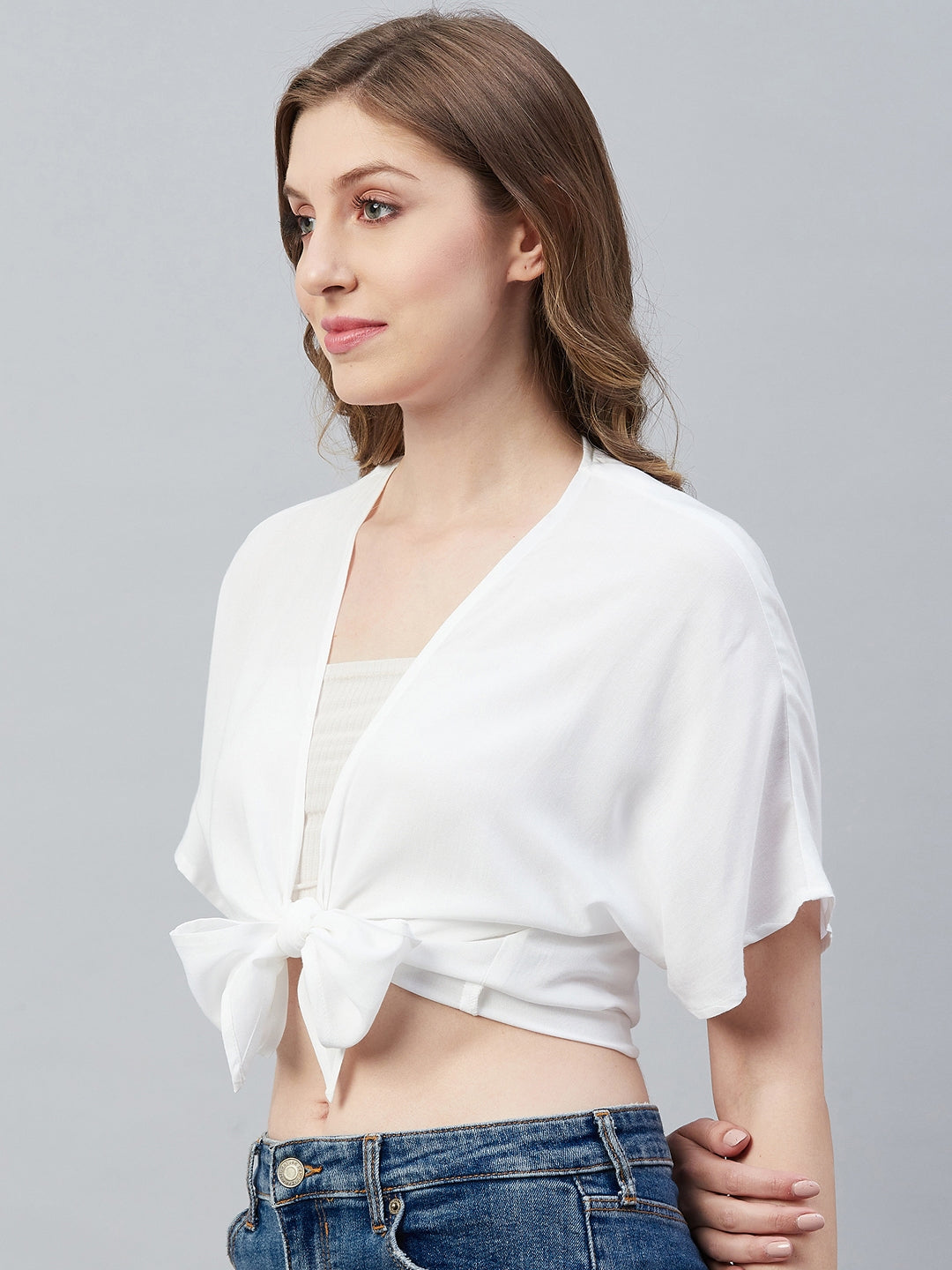 WHITE RAYON CHALLI TIE FRONT SHRUG TOP